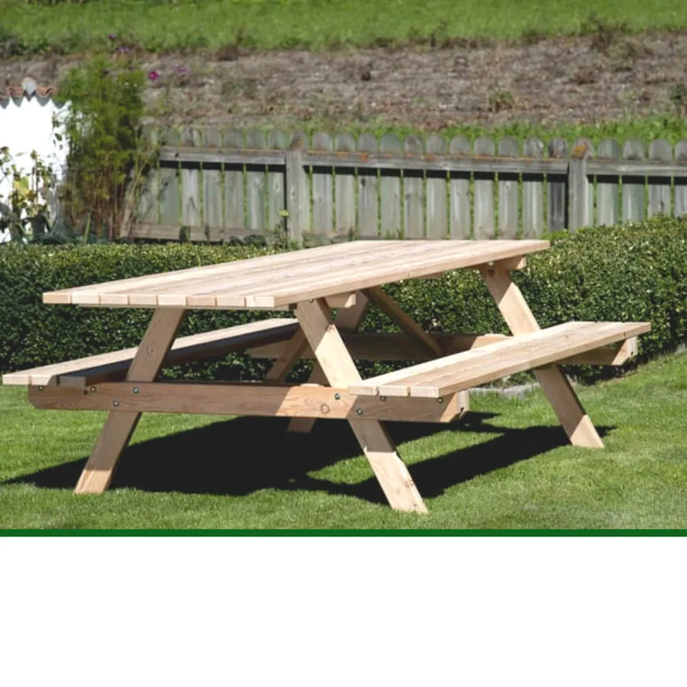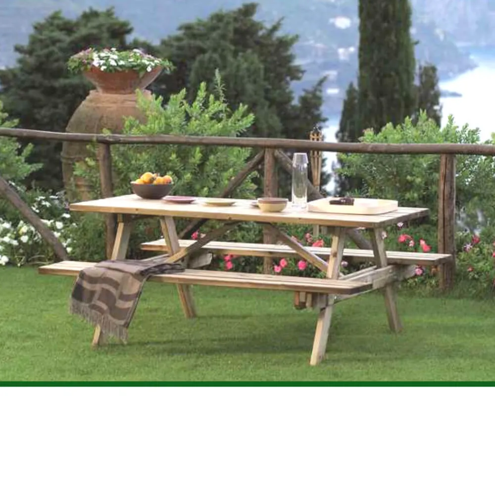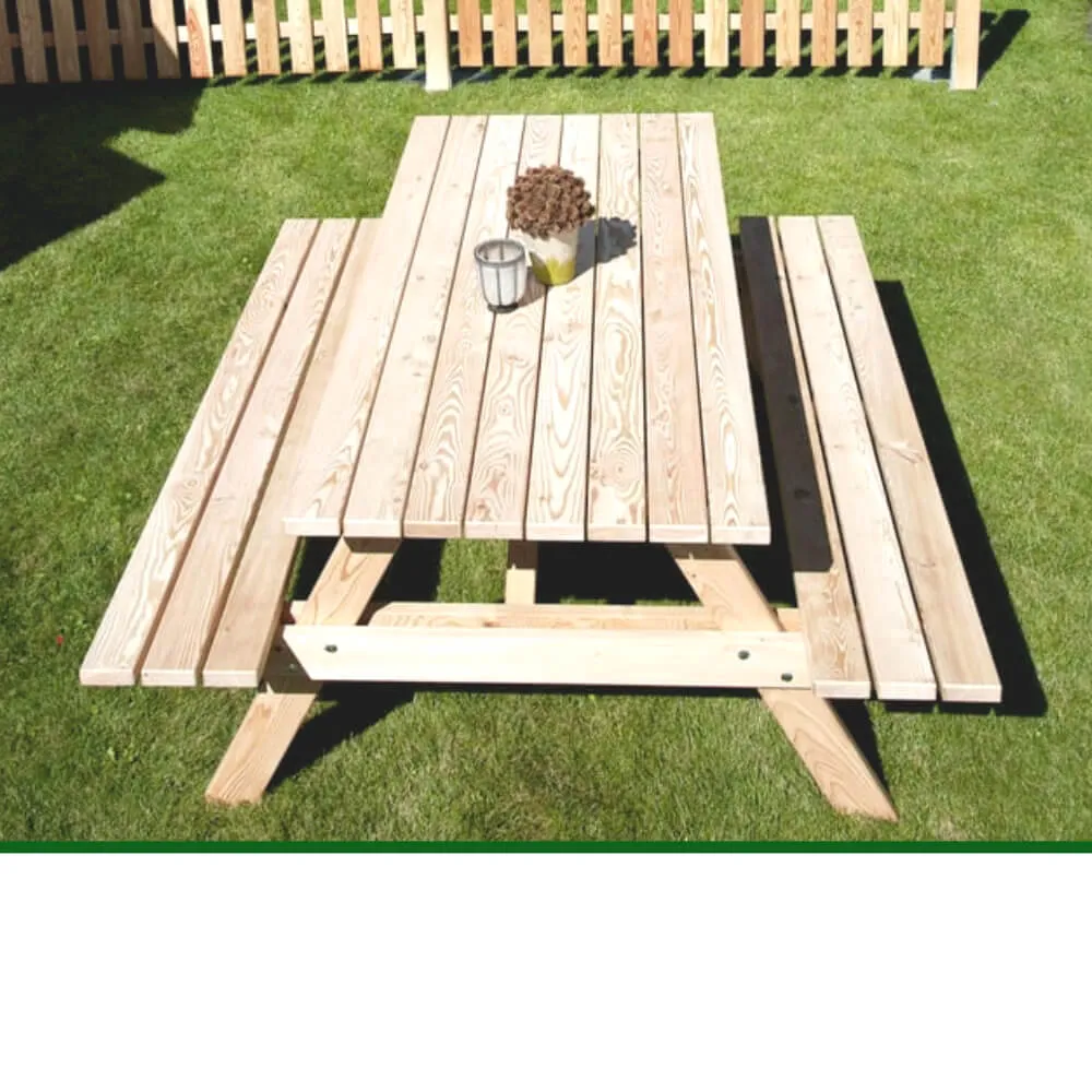 Ein Picknicktisch ist Gartentisch und Gartenbank in Einem. Die Tischplatte ist fest mit den Sitzplätzen verbunden, Tisch und Bank bilden eine Einheit. Die Sitzflächen sind genauso wie die Tischplatte aus massiven starken Holz Bohlen gefertigt. Eine Rückenlehne gibt es nicht, denn der Einstieg zu den Sitzplätzen erfolgt über die Sitzfläche. Eine Lehne würde hier stören.