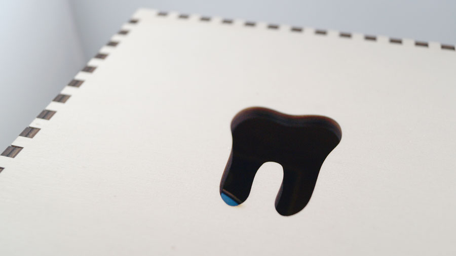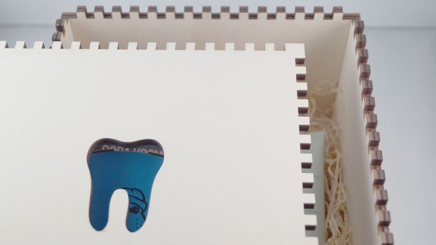 Schreibe die erste Bewertung für „Quadratische Holzbox mit Zahnmotiv“