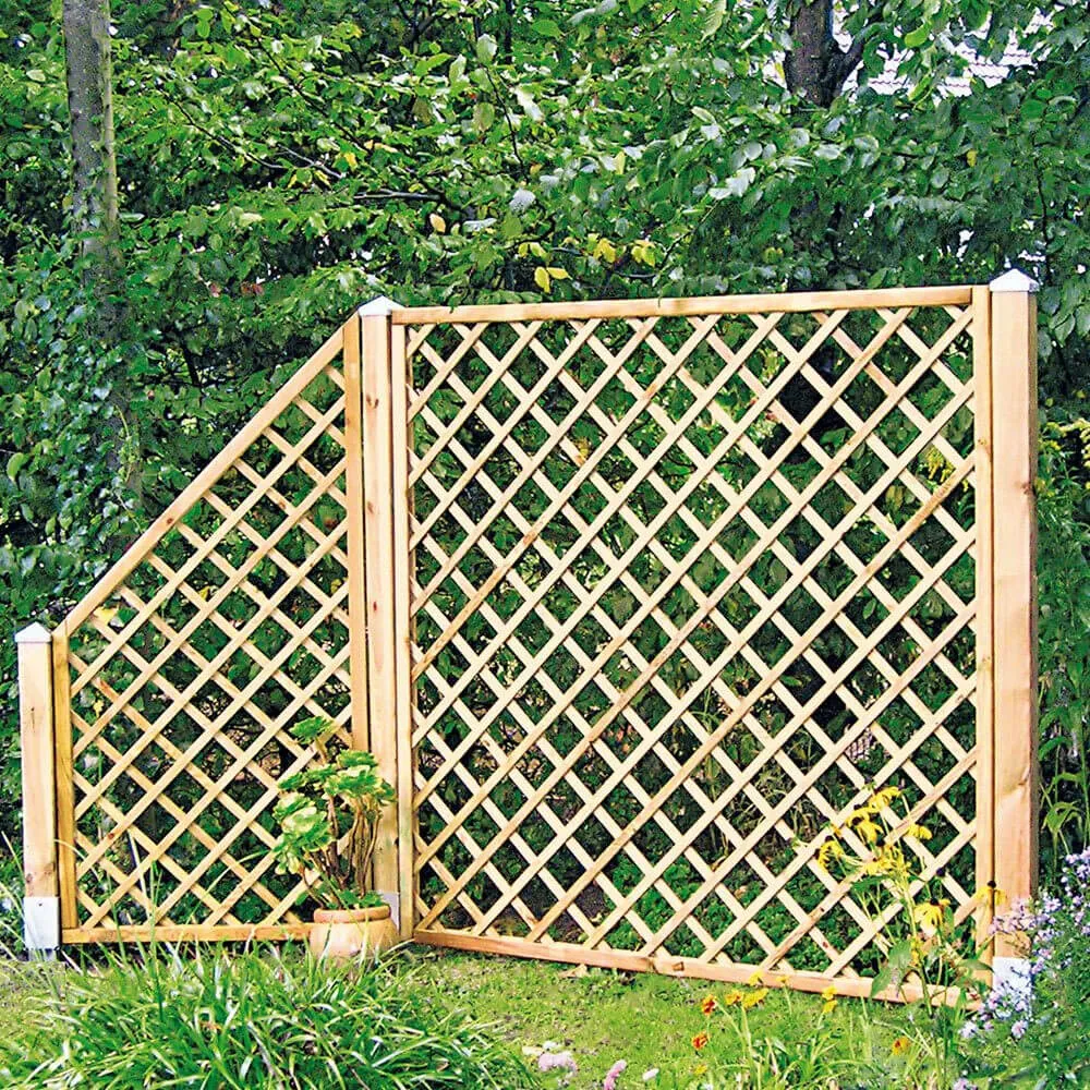 Rankzäune werden gern mit Pergolen kombiniert, schön bepflanzt und zugerankt, lassen sich so leicht beispielsweise Garagenwände verstecken.