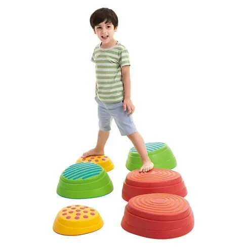 - Inspiriert vom „Springen über die Steine am Fluss“ bietet dieses Produkt von Weplay lustige Bewegungsaktivitäten. Die bunten und schlichten „Steine“ ermöglichen unterschiedliche Routenmuster. Jede Steingröße hat unterschiedliche Arten von Hängen. Sie können die „Steine“ auch stapeln, um verschiedene Herausforderungen für Benutzer mit unterschiedlichen Bedürfnissen zu schaffen. Die verschiedenen Muster und Texturen auf der Steinoberfläche bringen unterschiedliche Tastsinne mit sich. Rutschfeste Oberfläche und Boden sorgen für beste Stabilität und Sicherheit. Nach Gebrauch kannst du die River Stones ganz einfach im mitgelieferten Rucksack verstauen.