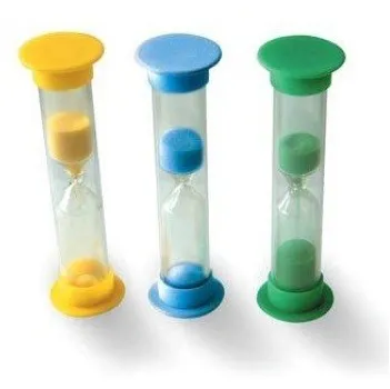 Dieses Mini-Sanduhr-Set besteht aus 3 Sanduhren (von 1, 3 und 5 Minuten). Die Sandtimer sind ideal, um Kindern ein Zeitgefühl zu vermitteln. Verwenden Sie die Mini-Timer im Klassenzimmer oder zu Hause für Tests oder Aufgaben, die pünktlich verlaufen.