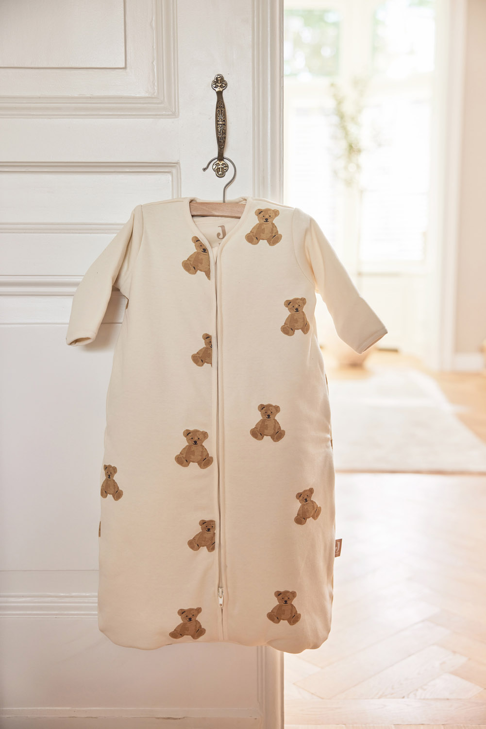 Dieser süße Teddybär-Print ist unwiderstehlich! Der süße Bär leistet Ihrem Baby Gesellschaft. Wir sehen diesen Druck auf verschiedenen Produkten, wie einem Schlafsack, Lätzchen und sogar einer Laufstallmatte. Sie kombinieren den Teddybär mit den Artikeln aus unserer Boucle-Kollektion.