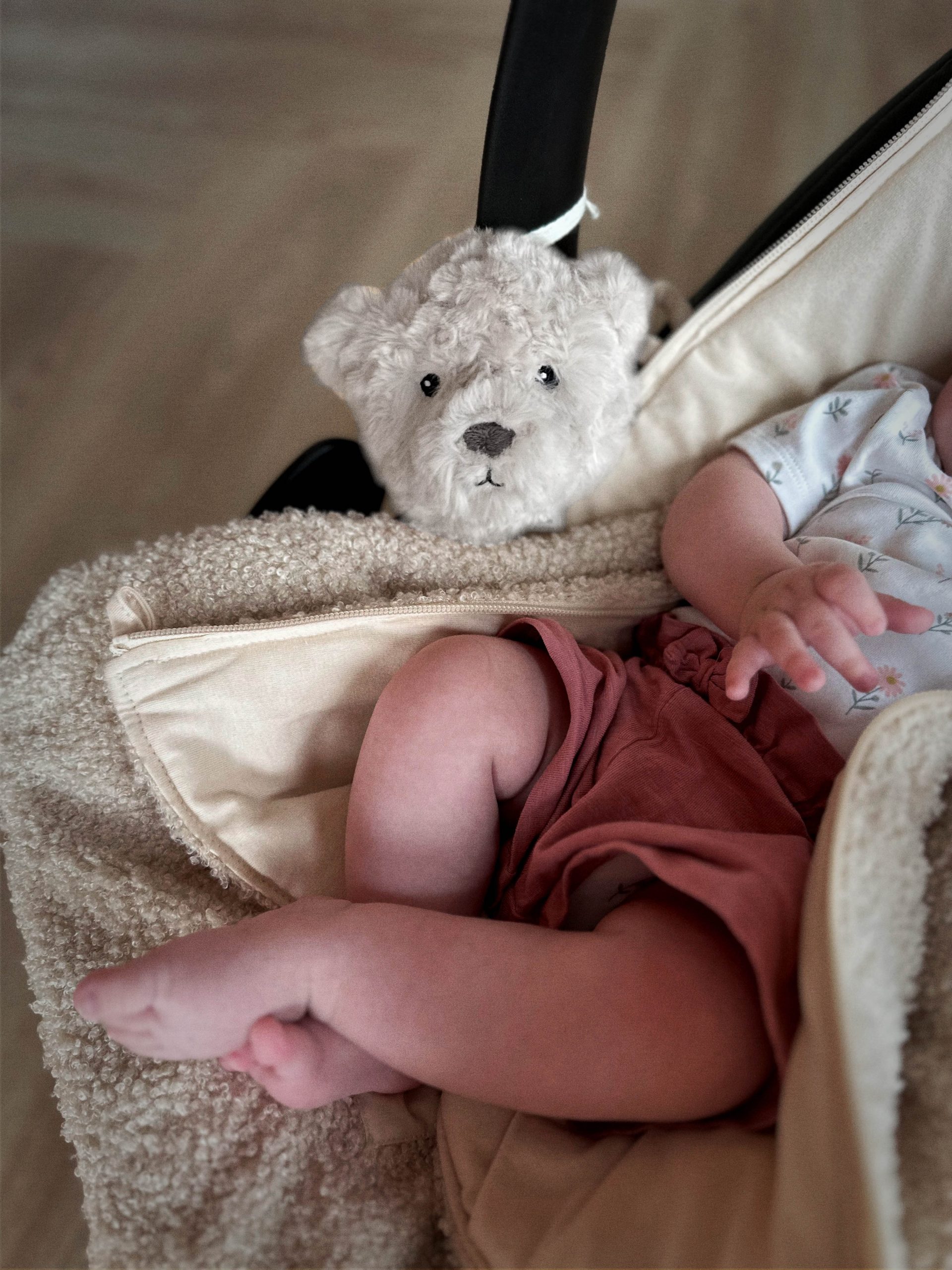 Die Bettdecke für unterwegs ist eine kleinere Version zum einfachen Tragen. Ein Spielzeug mit einer Spieluhr, die dafür sorgt, dass sich Ihr Kind auf der Straße sicher und ruhig fühlt. Mit der Schnur können Sie den Bärenkopf ganz einfach an Ihrem Maxi Cosi oder Kinderwagen befestigen.