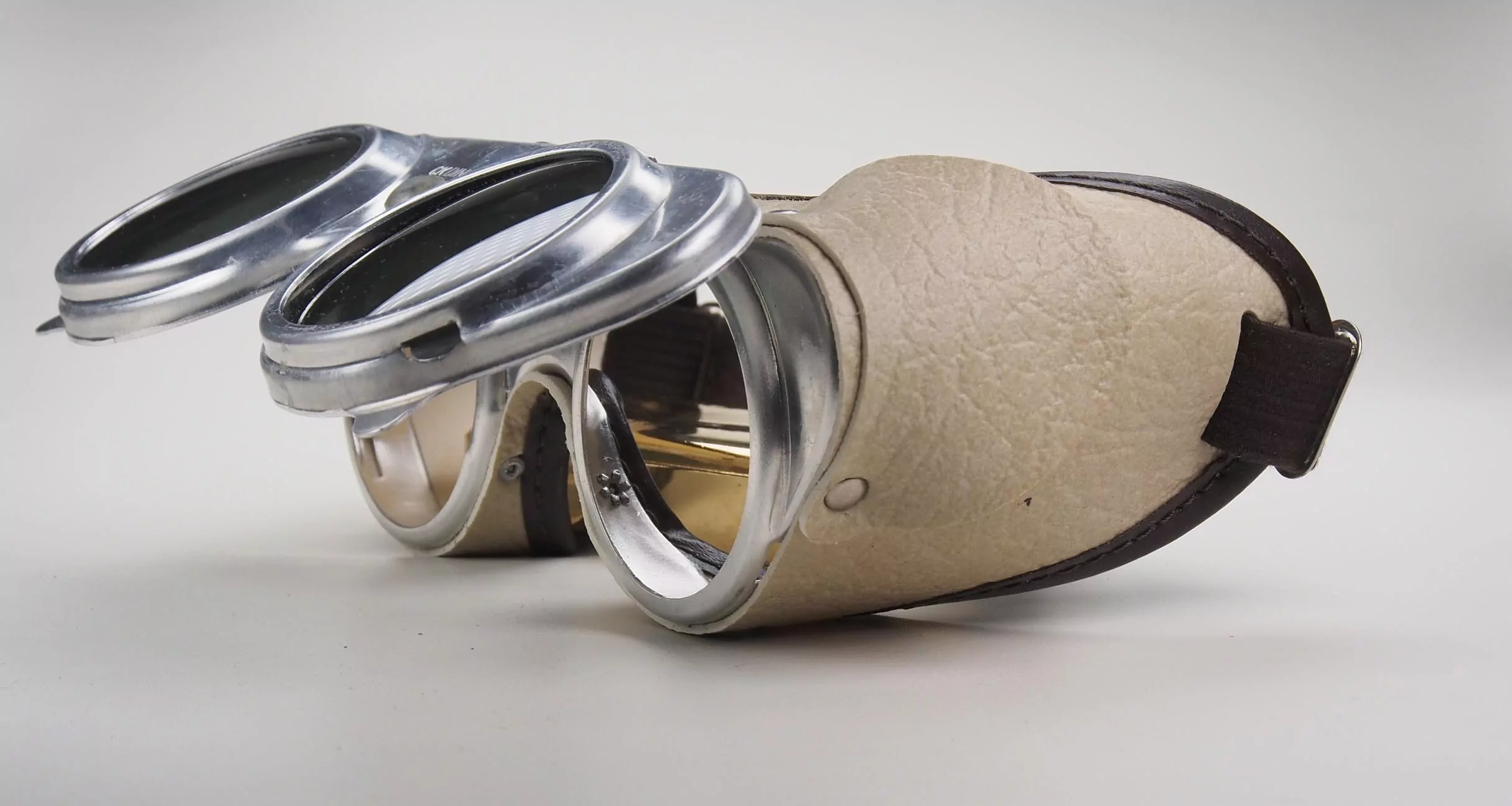 Schutzbrille, Runde Brillengläser mit weichem Lederschutz und Sportbügeln