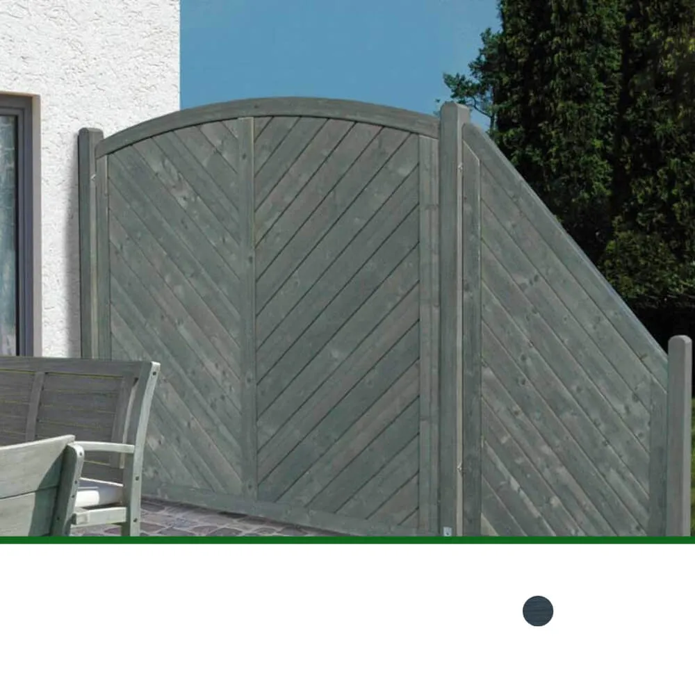 Massive Sichtschutz-Elemente mit Leimholzbogen, die nach solider Handwerkstradition verarbeitet sind. Auffallend massive Rahmen, ca. 42 x 78 mm stark und formschön gerundet, Füllung aus 18 mm starkem sortiertem Fichten-Profilholz, und edelstahl-verarbeitet !