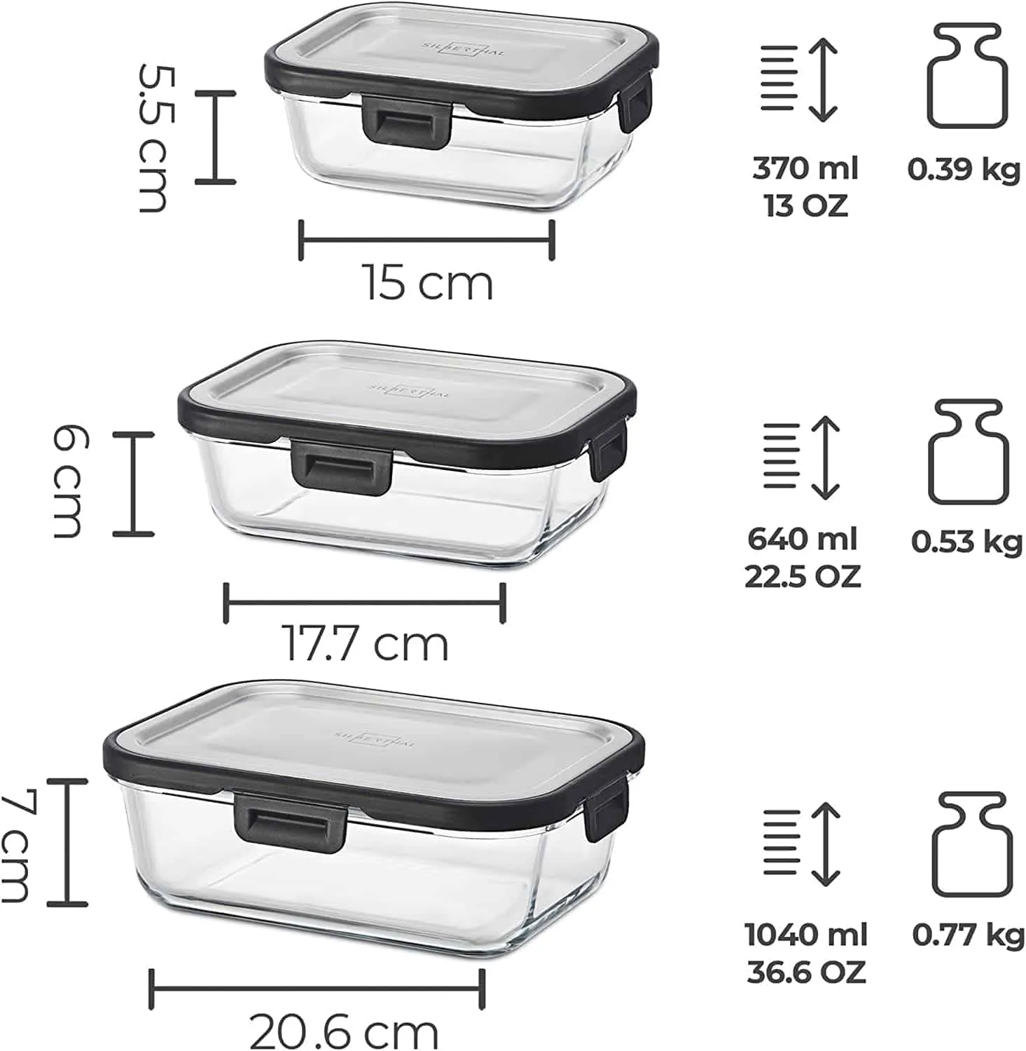 - ✓ Platzsparendes, vielseitiges Set – Bestehend aus 3 Behälter für unterschiedliche Bedürfnisse (370ml, 640ml, 1040ml), die sich platzsparend auf- oder ineinander stapeln lassen.