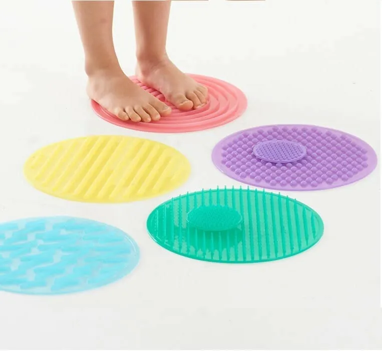 Dieses Set von sensorischen Gefühlskreisen besteht aus 10 runden Scheiben aus ultraweichem, flexiblem Silikon – 5 große und 5 kleine mit verschiedenen Texturen / Mustern. Auf der Oberfläche jedes Gefühlskreises befindet sich ein Muster, das unverwechselbar ist und sich vom Rest des Sets unterscheidet. Kinder können die Texturen mit Händen und Füßen spüren und die Unterschiede und ihre Vorlieben entdecken.