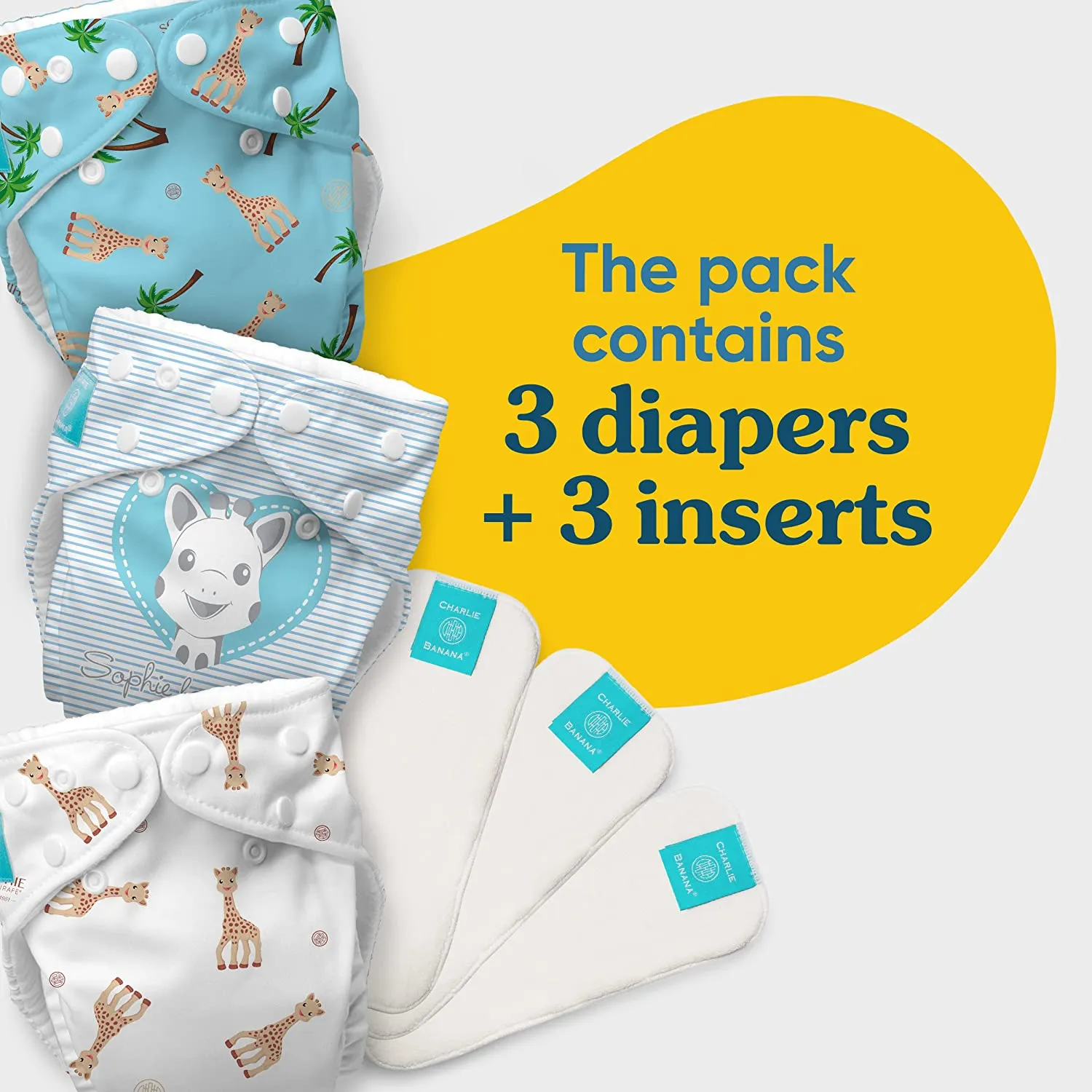 Eines Tages traf Sophie la Giraffe Charlie Banana und sie haben sofort eine Freundschaft erschaffen. Aus dieser Freundschaft ergab sich eine wunderbare Sache – eine schöne Sammlung von wiederverwendbaren Stoffwindeln und Accessoires mit den bezauberndsten Designs, die die Welt je gesehen hat. Die patentierten wiederverwendbaren Windeln von Charlie Banana sind eine großartige Alternative zu Einweg-Windeln. Im Gegensatz zu den One-Size-Windeln gibt es diese Windeln in verschiedenen Größen, von extra klein bis groß.