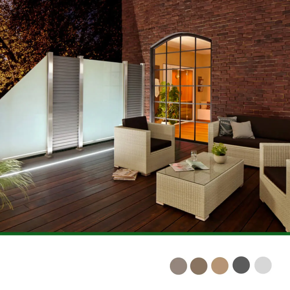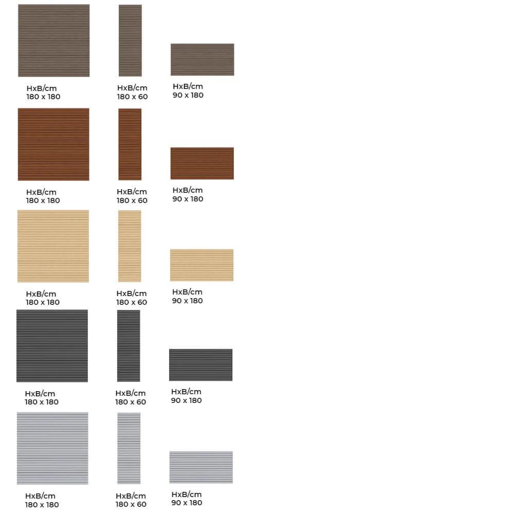 Die Rhombus-Profile aus Aluminium sind farblich beschichtet und zusätzlich ausgeschäumt. Dadurch weisen sie eine höhere Stabilität auf und können sich im Vergleich zu Profilen aus Holz kaum verziehen. SYSTEM RHOMBUS erlaubt eine leichte Einsicht, bietet dennoch ausreichenden Sichtschutz. Die Elemente sind in Höhe und Breite variabel. Die Höhe variieren Sie durch die Anzahl der Profile, die Breite durch bauseitiges Ablängen.