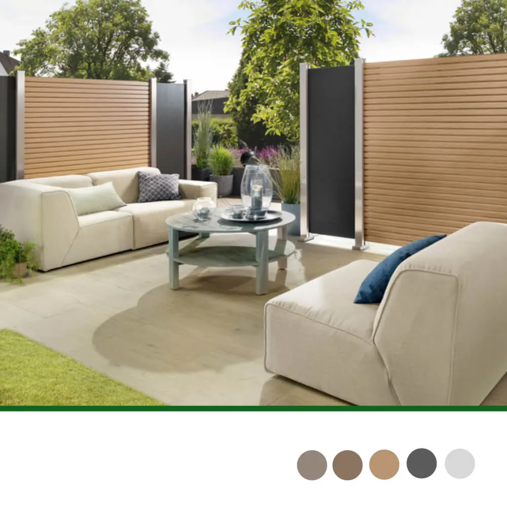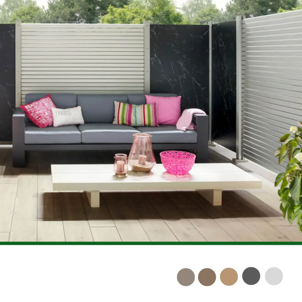 Das Rhombus Lärche Zaunfeld aus Aluminium weist eine höhere Stabilität auf und verzieht sich kaum im Vergleich zu Profilen aus Echtholz. Das Zaunelement ist in Höhe und Breite variabel. Die gewünschte Höhe wird bestimmt durch die Anzahl der Profile und die Breite kann durch bauseitiges Ablängen variiert werden.
