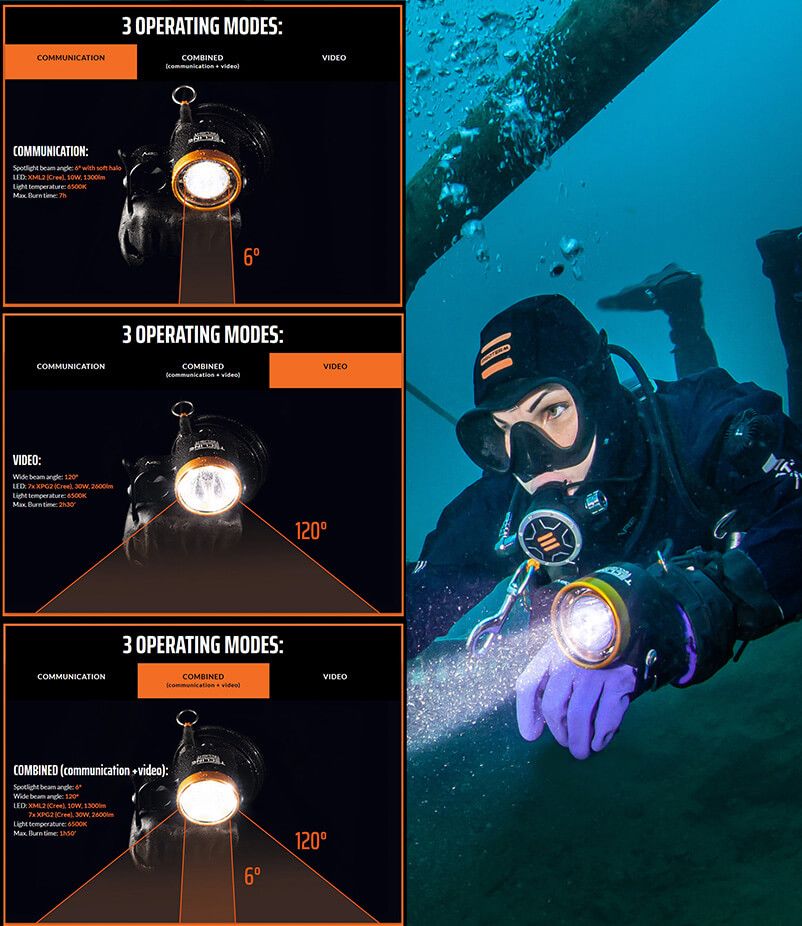 • Leuchtmittel: Spot Cree 1x XML 2, Video Licht 7x XPG 2