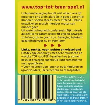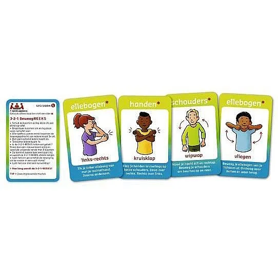 Ontdek spelenderwijs met deze hilarische en vrolijke TOP-tot-TEEN-spellen hoe je samen bewust bewegen superleuk kunt combineren met speelplezier! Lichaamsbeweging houdt niet alleen ons lijf maar ook ons brein alert én in goede conditie! Uit wetenschappelijk onderzoek blijkt steeds duidelijker waarom bewegen zo belangrijk is. Met deze kaarten heb je altijd leuke energizers voor in je klas!