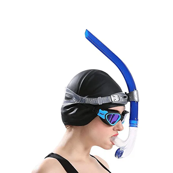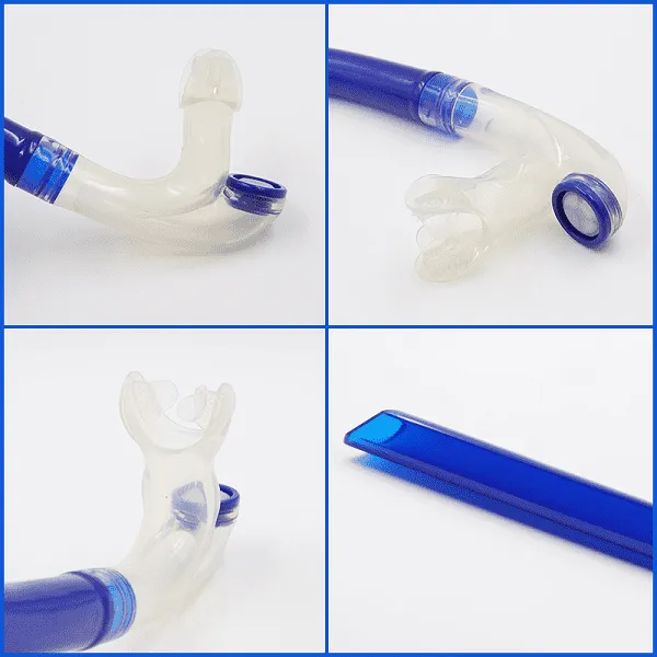Das ergonomische Design unseres Schlauchs erleichtert es, ihn im Mund zu halten, ohne dass er Sie auf eine Seite drückt, wie es bei herkömmlichen Atemschläuchen der Fall ist. Dadurch wird der Druck auf den Kiefer verringert, so dass Sie länger schwimmen können.