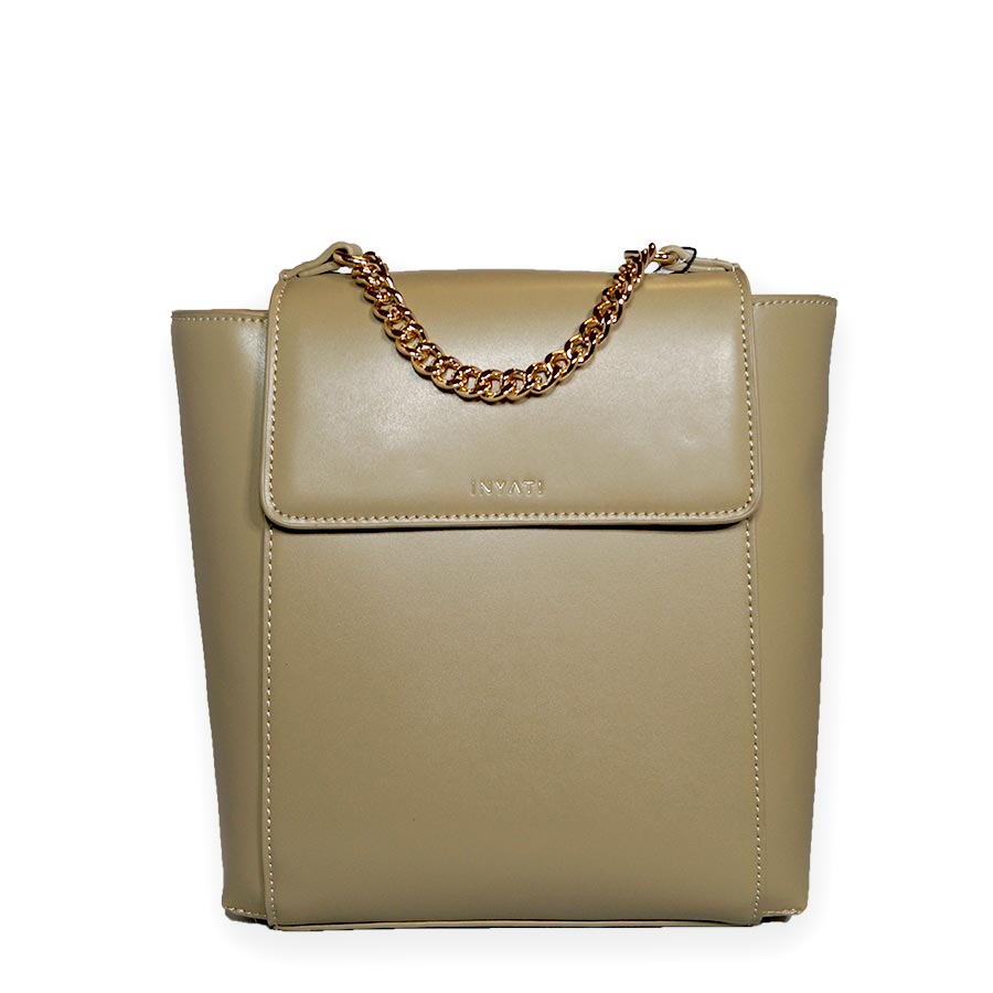 Nancy heißt dieser edle Rucksack mit dem gewissen Etwas. Der minimalistische Stil wird durch kleine Details wie den goldenen Kettengriff aufgepeppt.