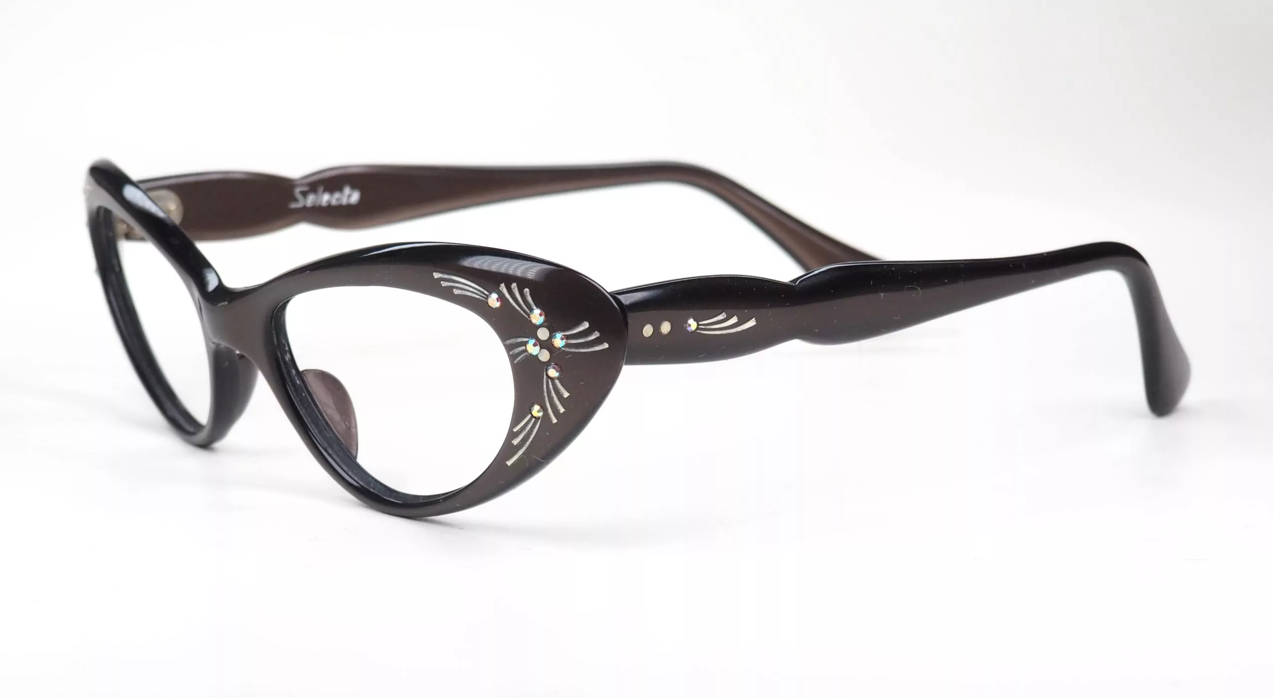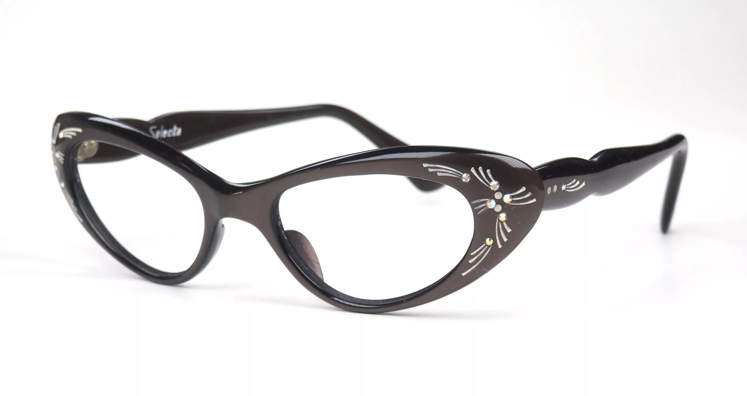 Sie erhalten eine original echte 60er Jahre Brille, keine Neuauflage. Die Brille ist in den 60er Jahren aus original Materialien hergestellt worden, die heute nicht mehr zur Verfügung stehen. Vintagebrillen sind besondere, zeitlose Unikate. Das beiliegende Zertifikat garantiert die Echtheit und Exklusivität der Cateye Brille. Besonders an diesem Brillen-Unikat ist die schöne Schmetterlingsform und die Dekore, wodurch die Brille der Sixties eine ausgewogene Wirkung erhält. Die Sechziger Jahre True Vintage Brille ist ideal für hohe Glasstärken. Rockabilly Brillen sind Top.
