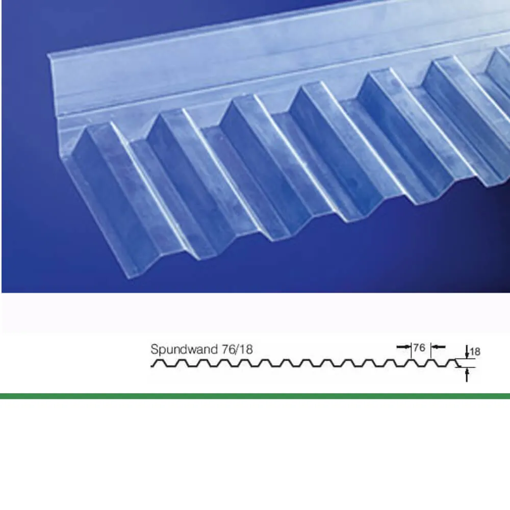aus transparenten PVC ( leicht bläulich ) in ca. 2 mm Stärke, für Lichtwellplatten mit Trapezprofil 76/18