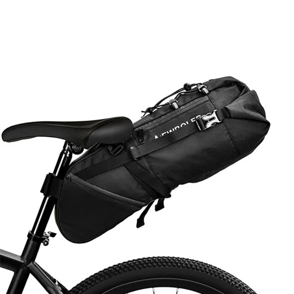 Das verbesserte Sattelbefestigungssystem zusammen mit den Kompressionsriemen verringert den Pendel-Effekt. So kann diese Fahrradtasche das Wippen reduzieren und eine bequeme Fahrt für lange Kilometer bieten. Außerdem verwendet diese Satteltasche eine bequeme Methode der Befestigung. Der Sattelstützengurt ist ein kräftiger Klettverschluss mit zwei oberen Riemen. Einer der Riemen wird um die Sattelstütze herum befestigt, und zwei der Riemen werden durch die Sattelschienen geführt. So lassen sich die letzten beiden leicht durch Ziehen am Ende festziehen.