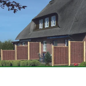 Trendige rahmenlose Sichtschutzäune mit starken Vollholz-Ruten der Weide! Von Hand geflochten überzeugen diese ungeschälten, vertikal gesetzten Hölzer, das natürliche Geflecht integriert sich perfekt ins Gartengrün! Die Ruten der Korbweide sind gegen Witterungen ölimprägniert.