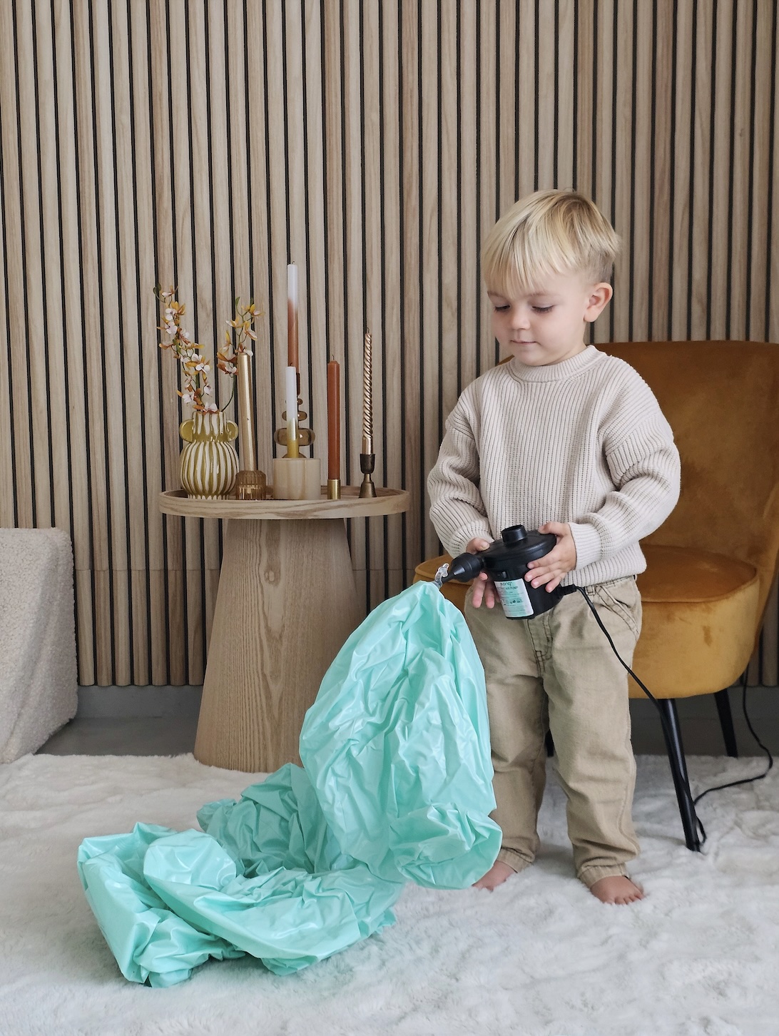 Tipp: Um Ihre Ballongirlande so rund wie möglich zu machen, lassen Sie das Vinyl zuerst in der Sonne aufwärmen, um es flexibler zu machen. When they have added air, they let you leave to some minutes to, the air can flow gleichmäßig through all rooms. Get then to be a little air, to to it absurunden, before they down it down. Nicht zu fest aufblasen, um Spannungen an den Nähten zu vermeiden.