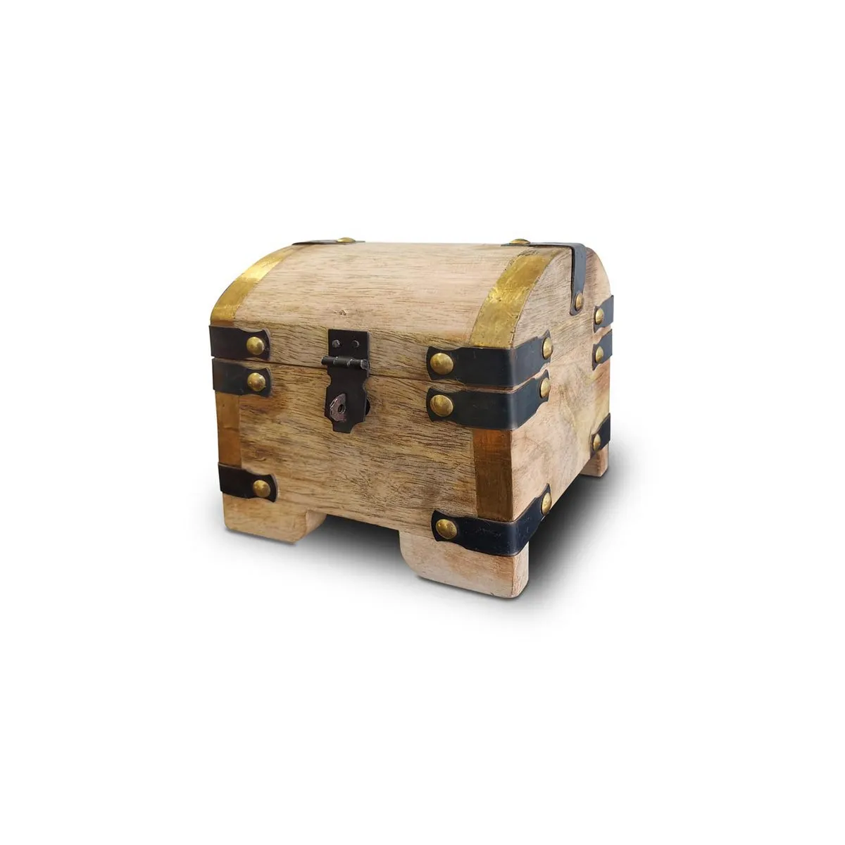 Die Schatzkiste besteht aus hochwertigem Mangoholz, das bekannt ist für seine Haltbarkeit und Festigkeit. Die handgefertigte Konstruktion garantiert außerdem, dass jedes Stück robust und langlebig ist, sodass Sie Ihre Schätze sicher aufbewahren können. Der Deckel ist einfach zu öffnen und zu schließen und schützt Ihre Gegenstände vor Staub und Schmutz.