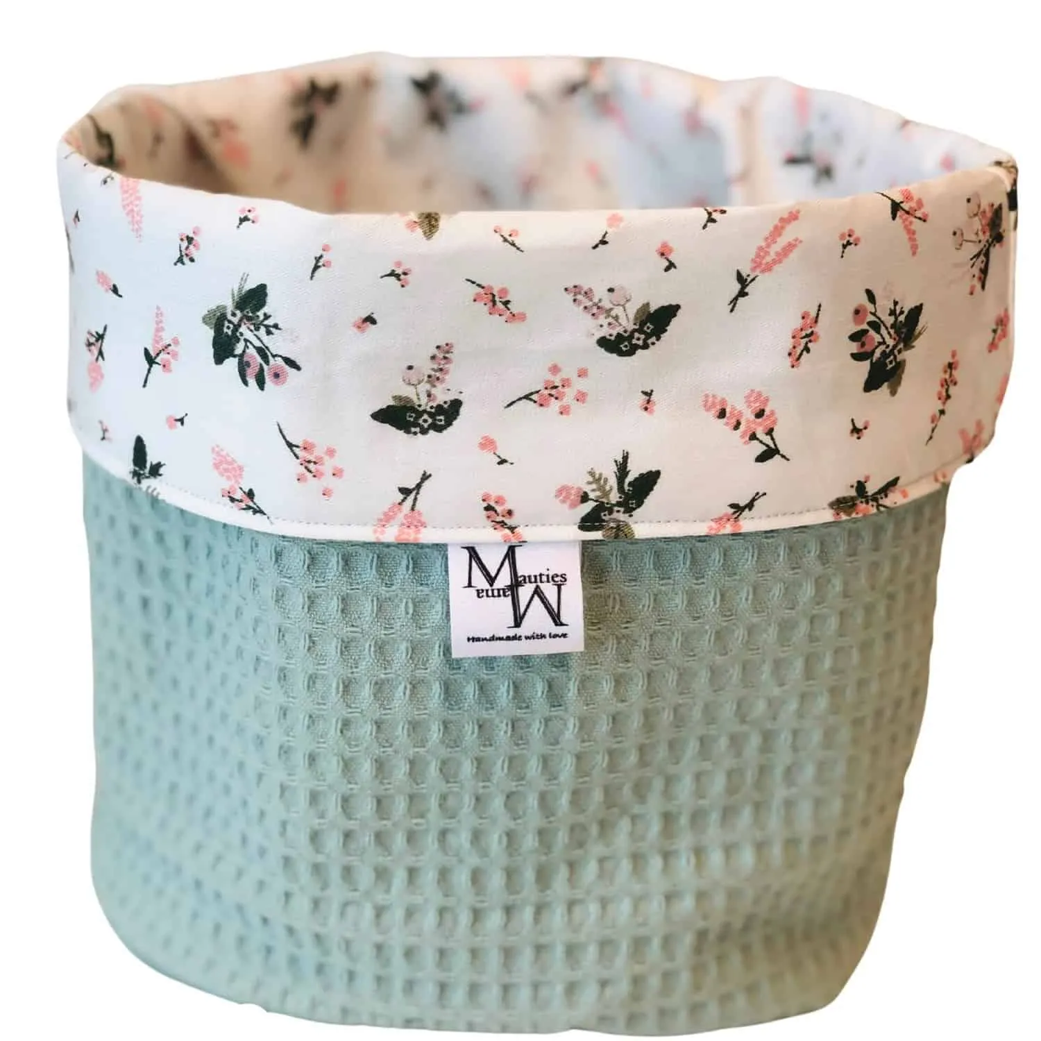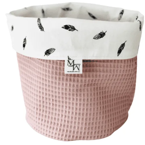 Material und Maße: Die Wickelkörbe bestehen aus 100 % nachhaltiger OEKO-TEX® zertifizierter Baumwolle. Die Standardgröße der Wickelkörbe hat einen Durchmesser von ca. 20 cm und eine Höhe von 20 cm, inklusive Bezug. Zwischen dem Waffelstoff und dem Druck befindet sich eine Einlage, die den Korb verstärkt, sodass die Seiten aufrecht bleiben.