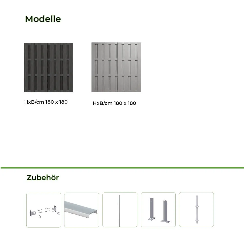 Bei den SCHARHÖRN-Elementen der ALU-Querriegel in der Farbe der WPC-Bretter dauerhaft pulverbeschichtet.Die spezielle Profilierung der massiven WPC-Profile sorgt für einen sehr blickdichten und streichfreien Bretterzaun in zwei verschiedenen Farbtönen. Die Verschraubung erfolgt mit nicht rostenden Schrauben.