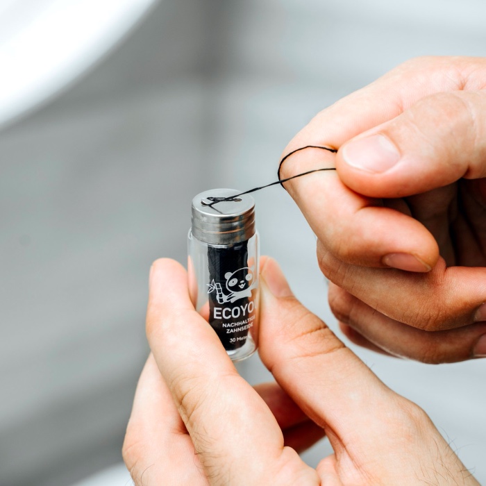 Die vegane Zahnseide von EcoYou pflegt deine Zähne sanft und gründlich.