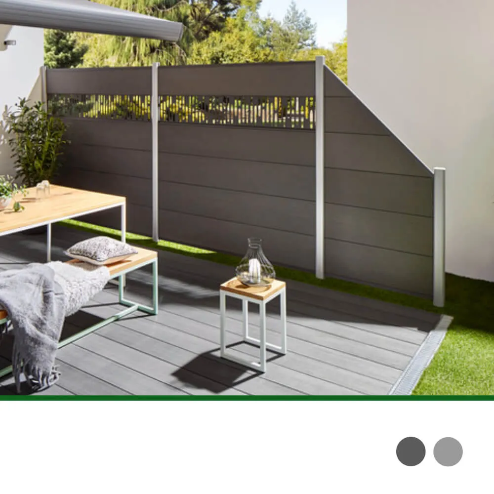 Mit den Dekoreinsätzen aus Edelstahl oder Glas und den Lichtleisten passen Sie die Sichtschutzanlage Ihren persönlichen Bedürfnissen an. Alle Teile, WPC-Profile, Dekorprofile, Licht- und Adapterleisten gibt es auch einzeln zur individuellen Planung.