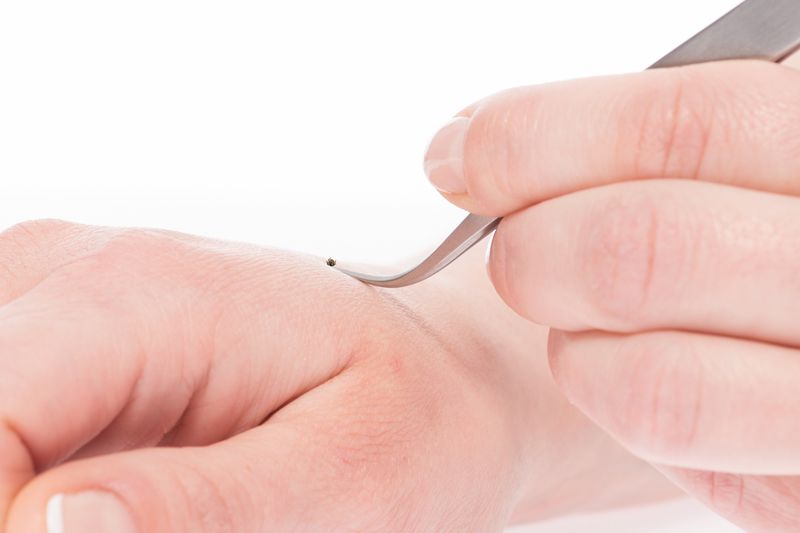 Anwendung: Mit der Spitze die Zecke möglichst hautnah am Zeckenkopf fassen und vorsichtig gerade herausziehen. Es ist kein Drehen der Zecke notwendig.