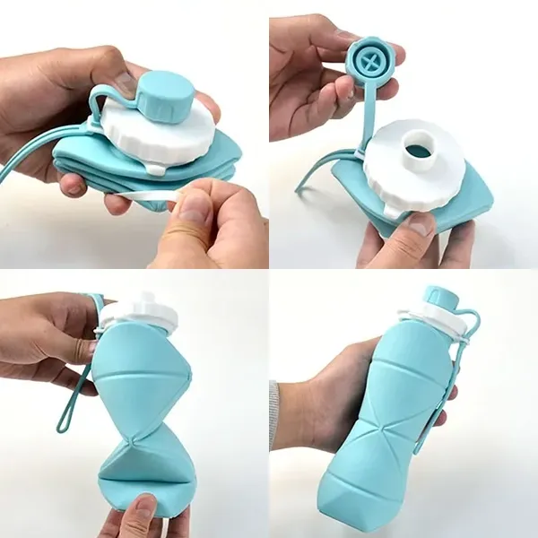 Unsere Silikonflasche lässt sich bequem zusammenfalten, wenn sie nicht gebraucht wird. Sie ist ideal für Reisen, Wanderungen oder andere Outdoor-Aktivitäten.