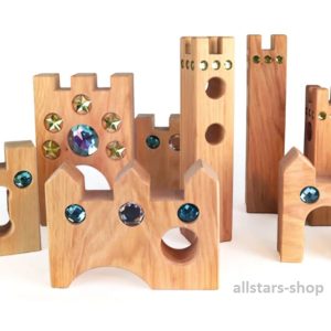 Allstars Märchenschloss 16-tlg. Holzbausteine bunte Facettenfenster Holzschloss Bauspiel