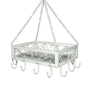 Ambiente Haus Topfhänger Romance 30 x 40 x 60 cm weiß aus gebranntem Holz und Eisen mit Kettenaufhängung